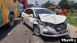 ওসি আকুল চন্দ্র বিশ্বাস জানান, “তাদের বহনকারী গাড়ি, ব্রাহ্মণবাড়িয়ার বিজয়নগর উপজেলার রামপুর এলাকায় পৌঁছালে, বিপরীত দিক থেকে আসা দুরন্ত পরিবহনের একটি যাত্রীবাহী বাসের সঙ্গে তার গাড়ির মুখোমুখি সংঘর্ষ হয়। গাড়ির সামনের অংশ দুমড়ে-মুচড়ে যায়, তবে, সৌভাগ্যক্রমে, তারা কেউ আহত হননি।”