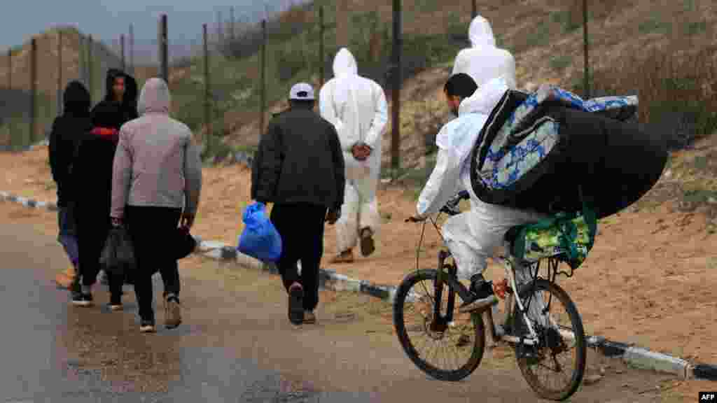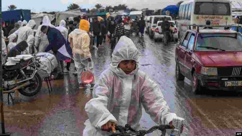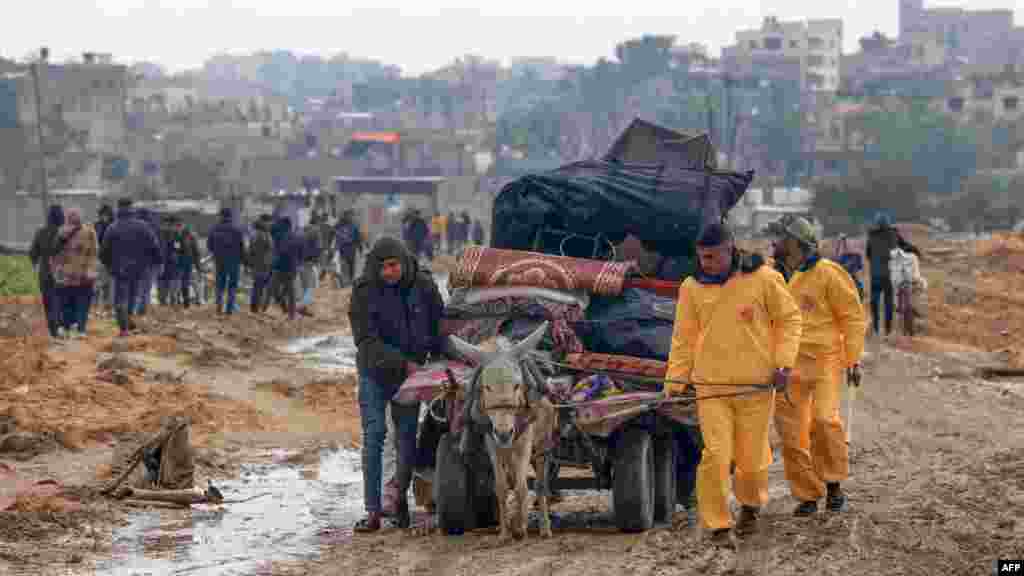 বৃষ্টির মধ্যে খান ইউনিস ছেড়ে চলে যাচ্ছে ফিলিস্তিনিরা