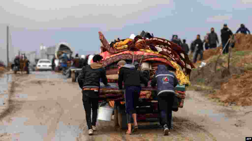 ইসরাইল ও হামাস জঙ্গি গোষ্ঠীর মধ্যে চলমান যুদ্ধের মাঝে গাজা ভূখণ্ডের দক্ষিণাঞ্চলে খান ইউনিসের আরও দক্ষিণে নিজেদের কিছু জিনিসপত্র গাড়িতে চাপিয়ে চলে যাচ্ছে ফিলিস্তিনিরা।