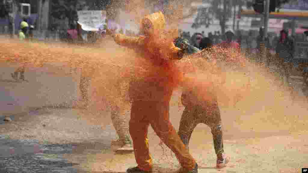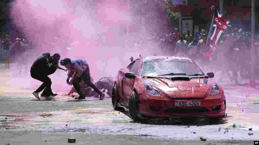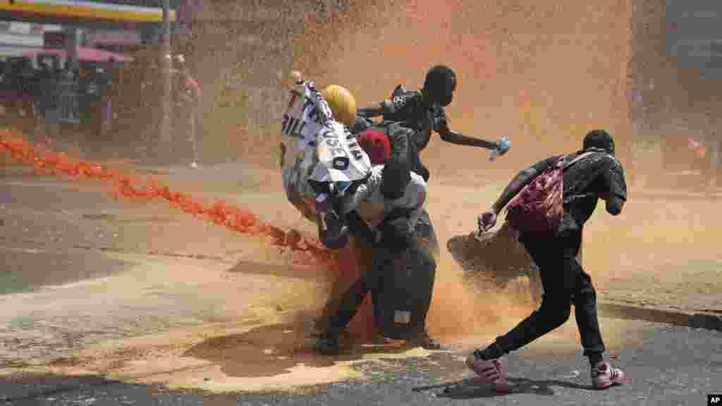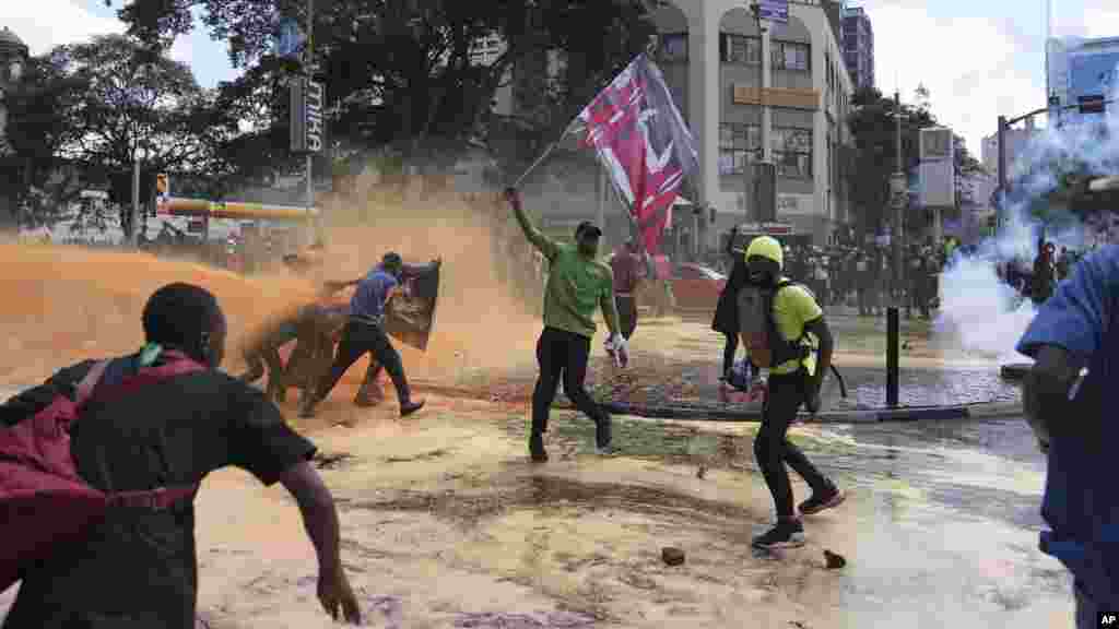 মঙ্গলবার ২৫ জুন কেনিয়ার নাইরোবির কেন্দ্রস্থলে একটি আর্থিক বিলে প্রস্তাবিত কর বৃদ্ধির প্রতিবাদের সময় কেনিয়া পুলিশ জলকামান ব্যবহার করলে বিক্ষোভকারীরা ছড়িয়ে ছিটিয়ে যায়।