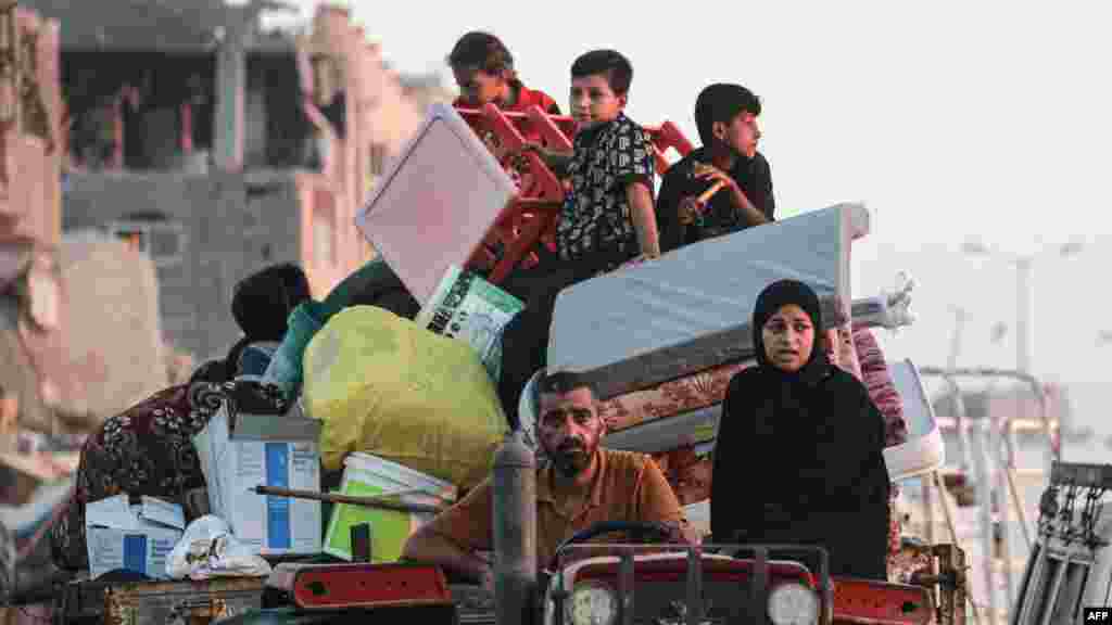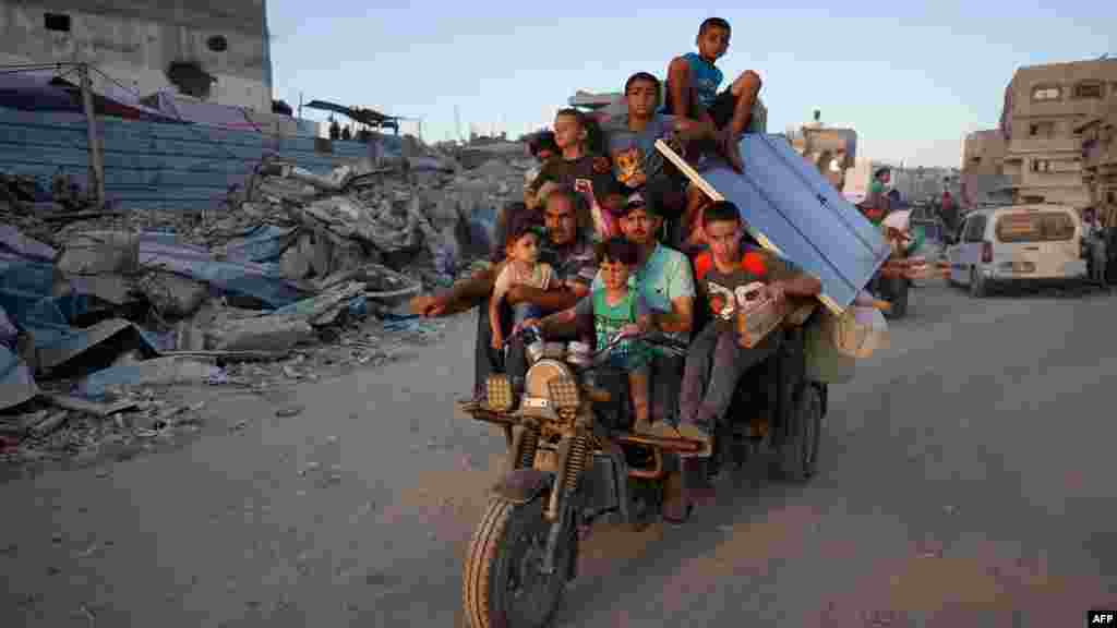 ২ জুলাই মঙ্গলবার বাস্তুচ্যুত ফিলিস্তিনিরা খান ইউনিসের পূর্বাঞ্চলে একটি এলাকা ছেড়ে চলে গেছে। এর আগের দিন ইসরায়েলি সেনাবাহিনী গাজার দক্ষিণাঞ্চলের শহর এবং রাফা শহরের বেশ কিছু অংশ খালি করার জন্য আদেশ জারি করে। (এএফপি)