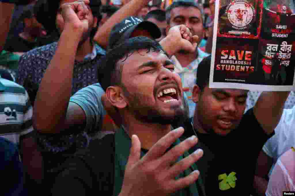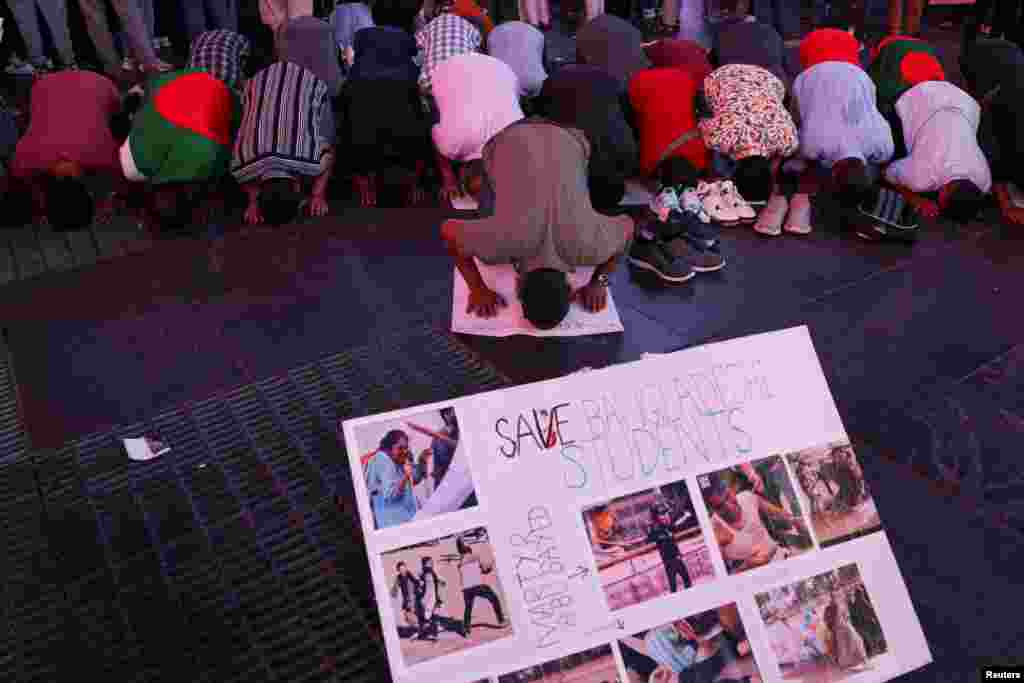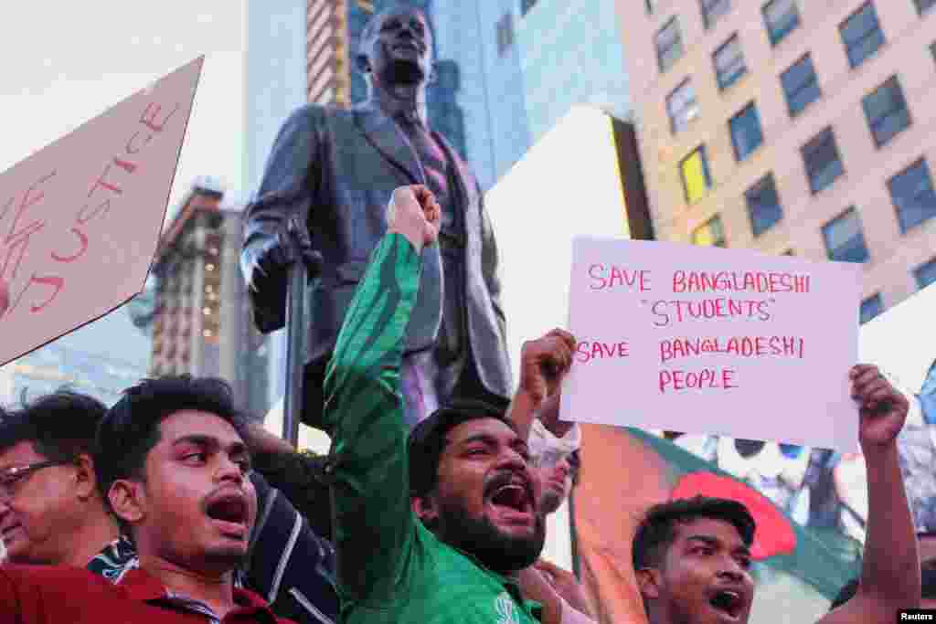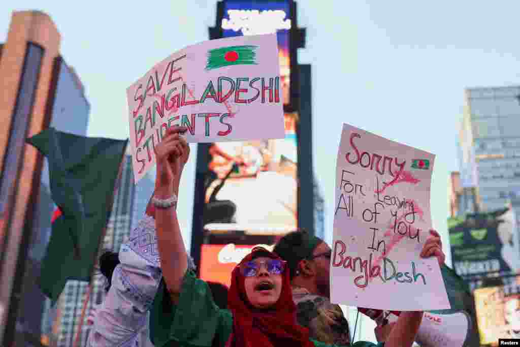 নিউ ইয়র্কের টাইমস স্কয়ারে বাংলাদেশে চলমান কোটা বিরোধী আন্দোলনে প্রাণহানির প্রতিবাদে বৃহস্পতিবার (১৮ জুলাই) সন্ধ্যায় যুক্তরাষ্ট্র প্রবাসী বাংলাদেশিরা প্রতিবাদ সমাবেশ করেছে।