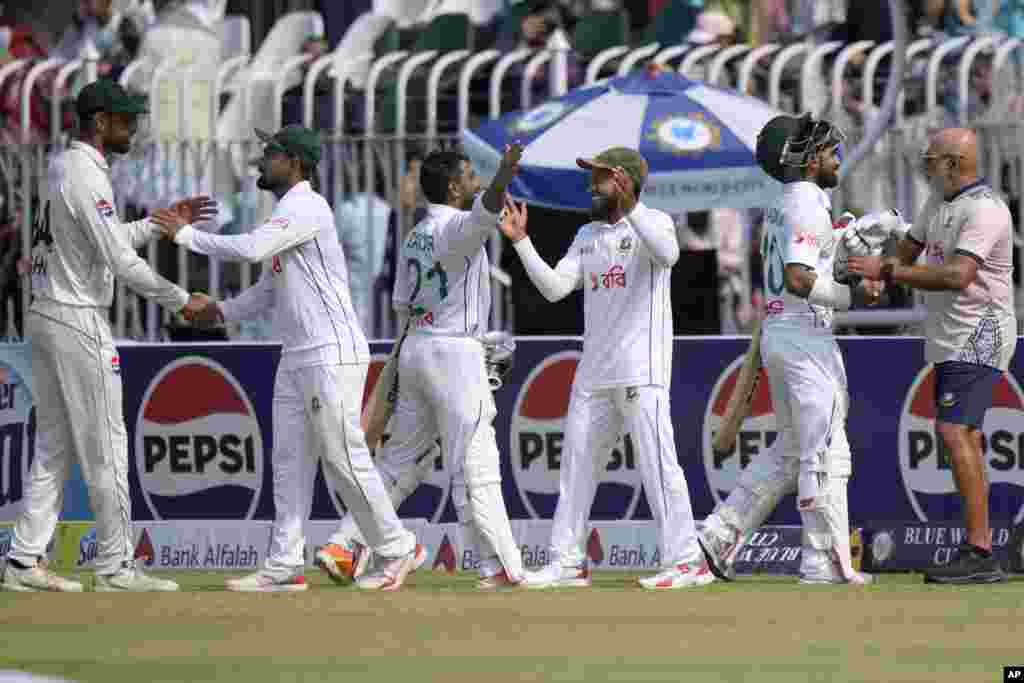 পাকিস্তান: ৪৪৮/৬ (ডিক্লে.) ও ১৪৬/১০ ((রিজওয়ান ৫১, শফিক ৩৭, বাবর ২২; মিরাজ ৪/২১, সাকিব ৩/৪৪)।