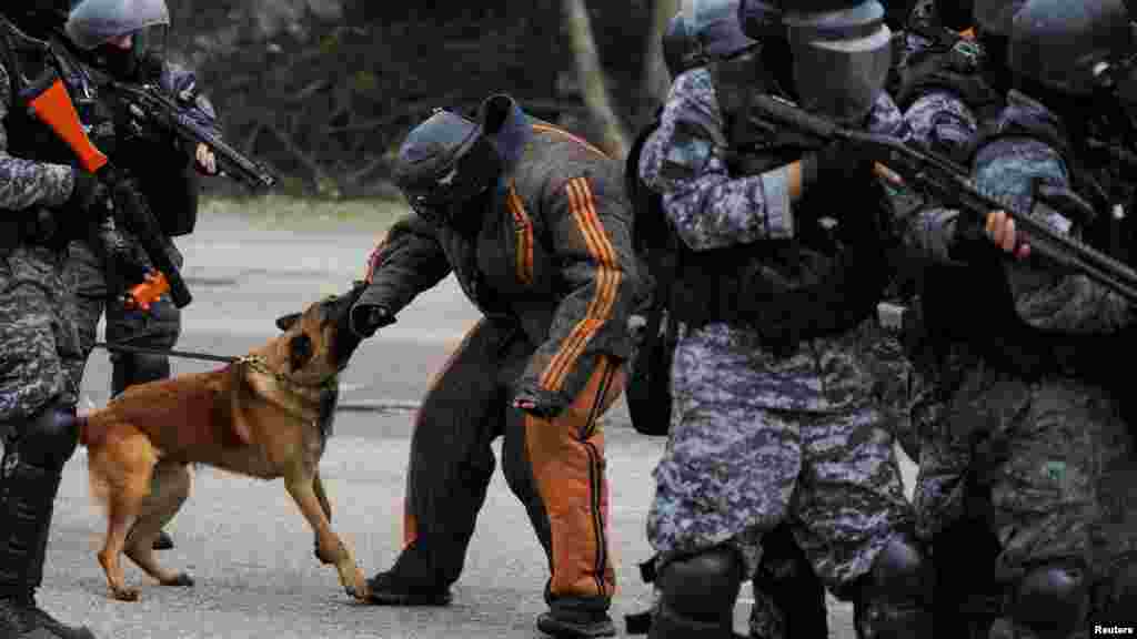 ব্রাজিলের রিও ডি জেনেইরোতে জি-২০ শীর্ষ সম্মেলন অনুষ্ঠিত হতে চলেছে। তার আগে সামরিক পুলিশ কর্মকর্তারা নিরাপত্তা বিষয়ক কৌশলের মহড়ায় অংশ নিয়েছেন।
