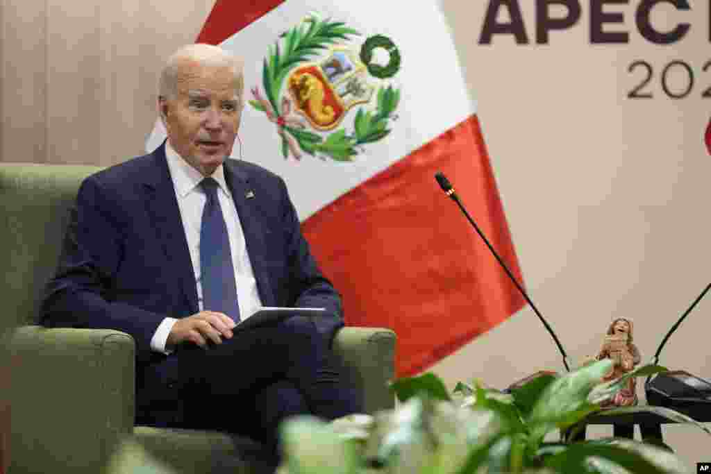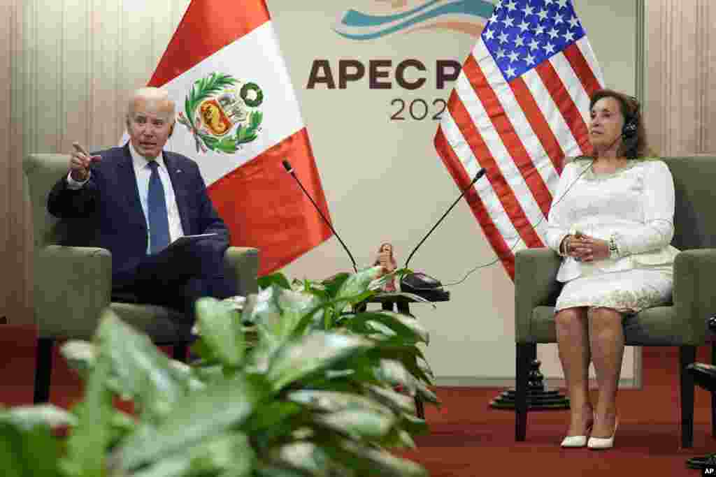 পেরু সফরকালে ১৫ নভেম্বর শুক্রবার, প্রেসিডেন্ট বাইডেন পেরুর প্রেসিডেন্ট দিনা বোলুয়ার্টের সাথে একটি দ্বিপাক্ষিক বৈঠক করেন। বৈঠকে দুটি দেশের প্রতিনিধি দল উপস্থিত ছিলেন।