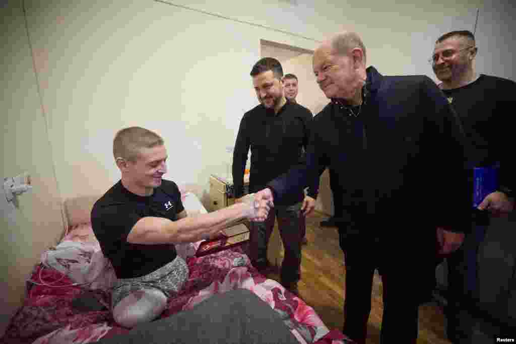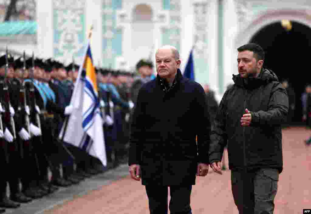 ইউক্রেনের প্রেসিডেন্ট ভলোদিমির জেলেন্সকি কিয়েভে জার্মান চ্যান্সেলর ওলাফ শল্টজকে একটি আনুষ্ঠানিক স্বাগত অনুষ্ঠানের মাধ্যমে অভ্যর্থনা জানান। সোমবার, ২ ডিসেম্বর, ২০২৪।