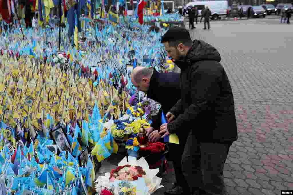 এরপর দুই নেতা রাশিয়ার বিরুদ্ধে চলমান যুদ্ধে নিহত সৈন্যদের নাম লেখা ইউক্রেনের পতাকা সহ একটি অস্থায়ী স্মৃতিসৌধের স্থান পরিদর্শন করেন। এছাড়াও একটি সামরিক হাসপাতালএবং চালকবিহীন যানবাহনের প্রদর্শনীতেও যান দুজন।