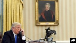 হোয়াইট হাউজের এক বিবৃতিতে বলা হয়েছে যুক্তরাষ্ট্রের প্রেসিডেন্ট ডনাল্ড ট্রাম্প এবং চীনের প্রেসিডেন্ট ঝি জিনপিং শুক্রবার রাতে এক টেলিফোন সংলাপে কোরীয় উপদ্বীপকে পরমাণু মুক্ত রাখার ব্যাপারে তাঁদের পরস্পরের প্রতিশ্রুতির পুনরাবৃত্তি করেন।