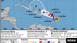 ঘূর্নিঝড় মারিয়া মঙ্গলবার নাগাদ St. Kitts, Nevis, Montserrat, Anguilla, St. Martin এবং U.S. ও British Virgin Islands এর দিকে অগ্রসর হবে বলে ধারনা করা হচ্ছে।