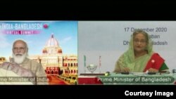 করোনাভাইরাস মহামারীর মধ্যে ঢাকা থেকে বাংলাদেশের প্রধানমন্ত্রী শেখ হাসিনা এবং নতুন দিল্লী থেকে ভারতের প্রধানমন্ত্রী নরেন্দ্র মোদীর মধ্যে বৃহস্পতিবার অনুষ্ঠিত ভার্চুয়াল বৈঠকে এমন প্রত্যয় ব্যক্ত করা হয়। প্রধানমন্ত্রী শেখ হাসিনা বলেছেন বাংলাদেশ ও ভারতের মধ্যে যে সহযোগিতামূলক ঐকমত রয়েছে তার সুযোগ নিয়ে দুই দেশই নিজ নিজ অর্থনীতিকে আরও সুসংহত করতে পারে। তিনি ভারতের প্রধানমন্ত্রীকে আগামী বছর ২৬শে মার্চ বাংলাদেশের স্বাধীনতার সুবর্ণজয়ন্তী অনুষ্ঠানে আমন্ত্রণ জানান। ভারতের প্রধানমন্ত্রী নরেন্দ্র মোদী তাঁর বক্তব্যে বলেছেন বাংলাদেশের সঙ্গে সম্পর্ক শক্তিশালী করার নীতি তাঁর দায়িত্ব নেওয়ার প্রথম দিন থেকেই অগ্রাধিকারে রয়েছে।